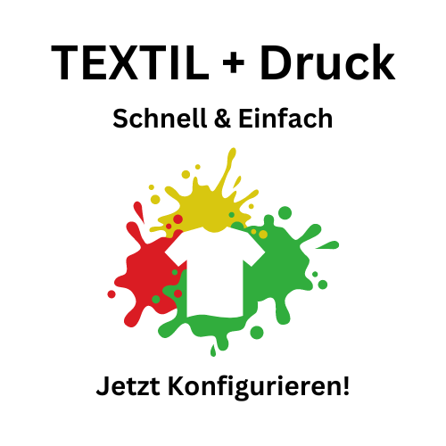 Unser einzigartiger Konfigurator macht es Ihnen leicht: In wenigen Schritten zu Ihrem perfekten Textil mit Druck! Keine lästigen Anfragen mehr – Sie sehen den Preis sofort.